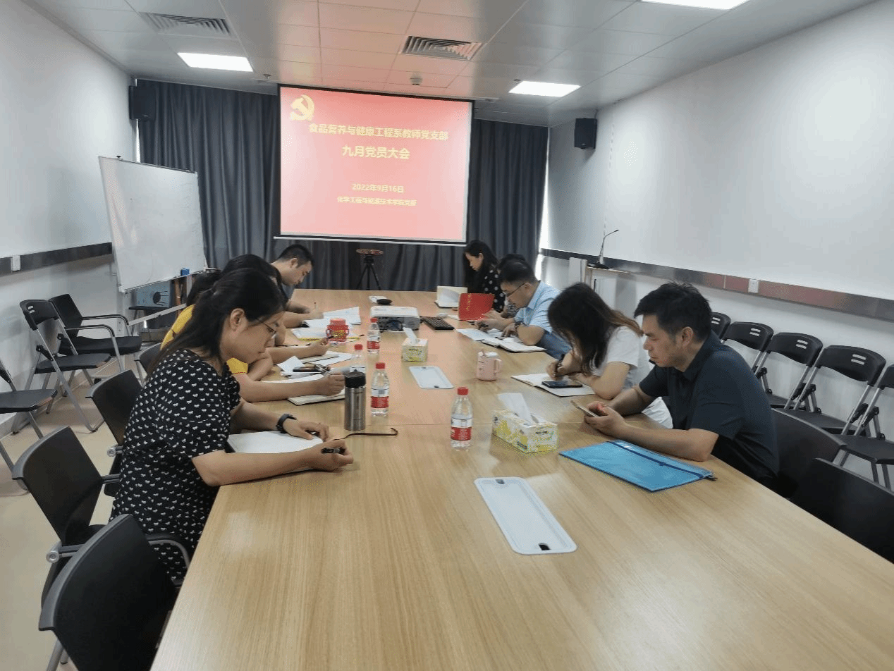 2022年9月16日上午,食品营养与健康工程系教师党支部在科创院310会议室开展主题党日活动。会议由支部书记闫景坤主持,支部全体党员参加了此次活动。