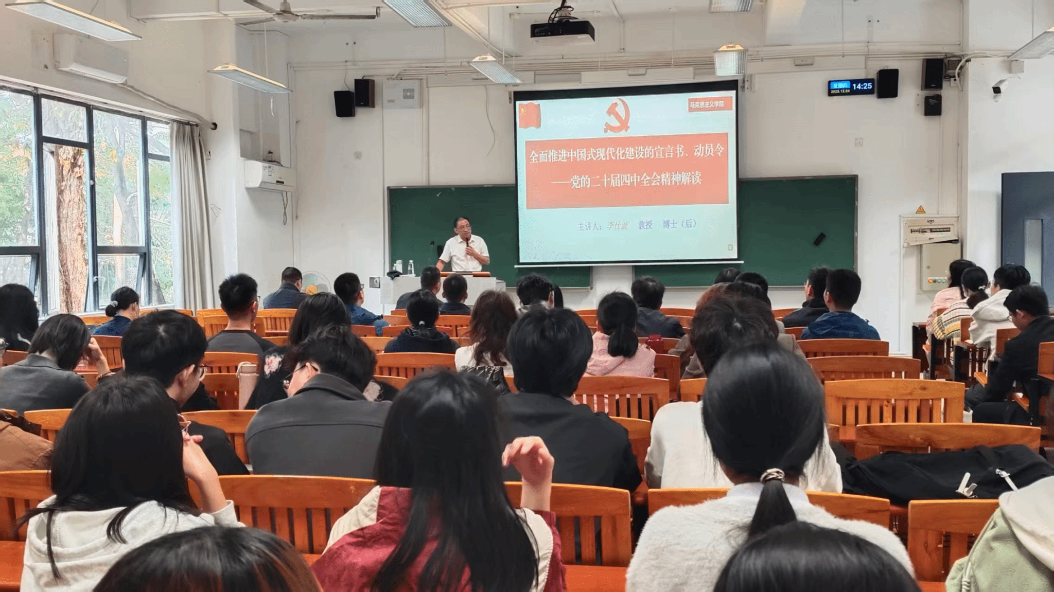 为深入学习领会党的二十届四中全会精神,切实把全院师生的思想和行动统一到党中央决策部署上来,12月4日,bevictor韦德国际在6C101举行学习贯彻党的二十届四中全会精神宣讲报告会。报告会由公司党委书记谢炯标主持,特邀马克思主义公司李仕波教授作专题报告。公司教职工、员工党员及各班级团支部书记参加学习。
