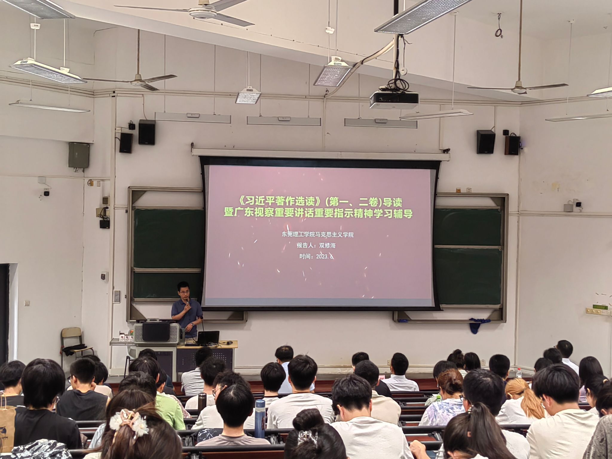 会上,双修海新时代伟大征程伟大实践的生动记录”“马克思主义中国化时代化的最新飞跃”“全面推进中华民族伟大复兴的行动指南等方面解读了《习近平著作选读》第一卷、第二卷的核心要义、精神实质、丰富内涵和实践要求,围绕全面深化改革、扩大高水平对外开放、提升科技自立自强能力、建设现代化产业体系、促进城乡区域协调发展等内容向师生们深入阐释了习近平总书记视察广东重要讲话重要指示精神。