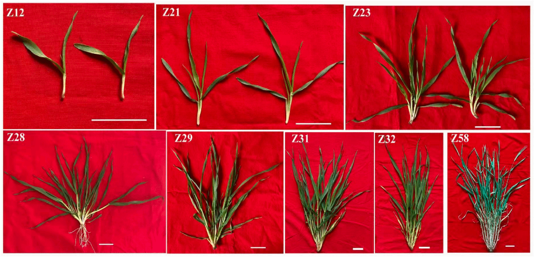 图1 从幼苗到抽穗的8个收割期的大麦苗