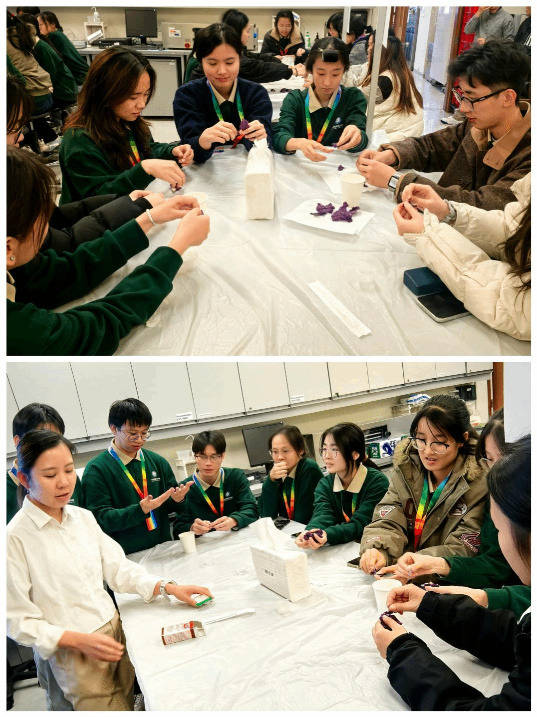 午后,公司师生实地参观了理大的教学科研设施,深入感受其学术氛围与校园文化。同学们纷纷表示,此次参访活动有助于拓宽视野、激发科学探究热情,为未来学习和职业发展提供了有益启示。在食品工艺学实验环节,同学们系统参与从原料处理到成品加工的全流程操作,并与理大学子共同开展了感官评价及集体研讨活动,通过校际学术交流与思想碰撞,切实提升了食品科学创新思维与实践能力。