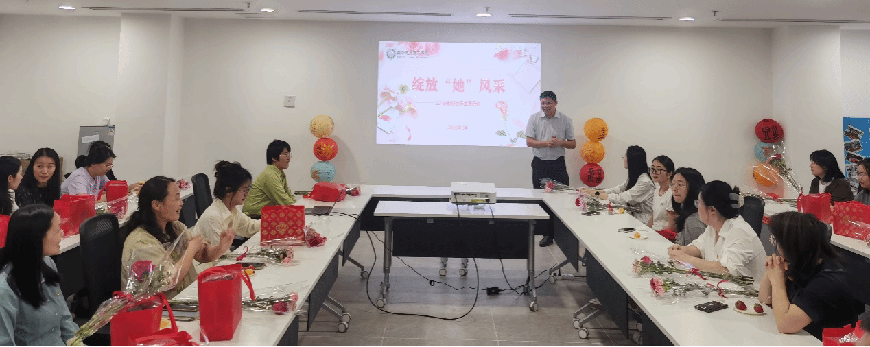 活动现场布置温馨,暖意融融。公司贴心地准备了精致茶歇,当一支支象征美好祝福的鲜花送到大家手中时,惊喜与感动的笑容绽放在每位女教职工脸上,会议室里回荡着欢声笑语。在轻松愉悦的氛围中,大家品甜点,话家常,畅谈工作生活点滴,分享节日喜悦,彼此距离在交流中悄然拉近。两位“三八红旗手”——刘亚青教授与贺丽生教授深情分享了平衡工作、科研与家庭的心得,她们展现的坚韧与智慧赢得全场由衷敬佩,掌声此起彼伏。