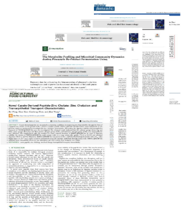 1. 生物活性肽等功能性天然产物的挖掘与活性评价:建立基于定向可控水解(包括生物发酵和酶法)的生物活性肽等功能性天然产物分离技术体系,实现生物活性肽等功能性天然产物的高效制备和分离;同时,以生物活性肽等活性物质为载体构建营养素递送体系,并依托细胞和动物模型对其构效关系及分子机制进行研究。